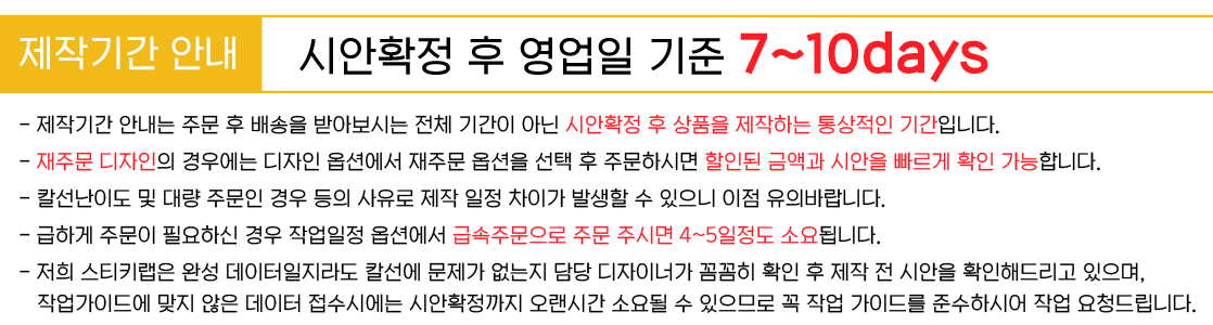 - ‘칼선’ 레이어는 라인(최소 +2mm)을 부드럽게 처리해주셔야 칼 작업시 유격이 발생하더라도 오차를 최소화 할 수 있습니다.
